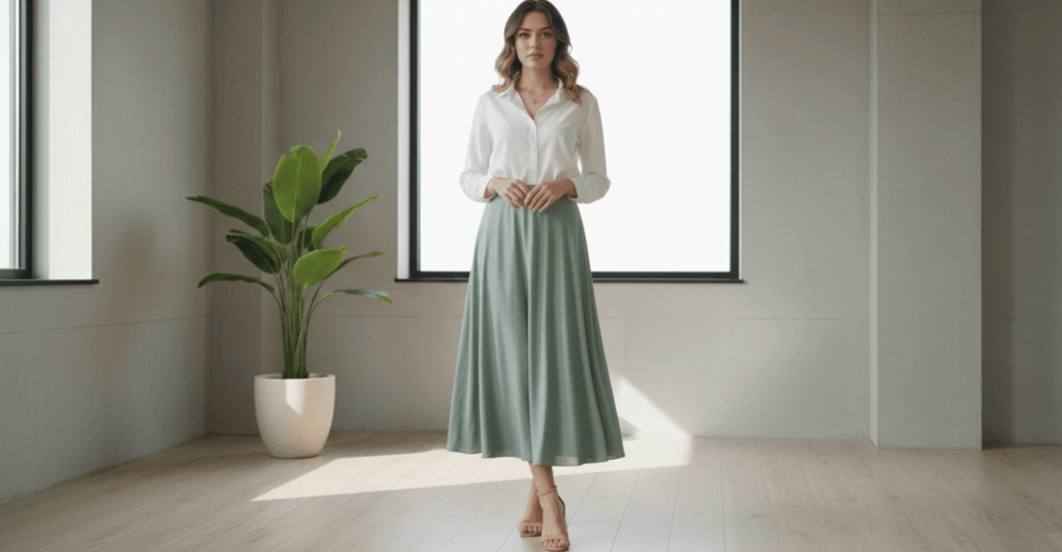 When you pair it with a sage green midi skirt, that timeless quality gets an earthy, modern twist that feels completely fresh.