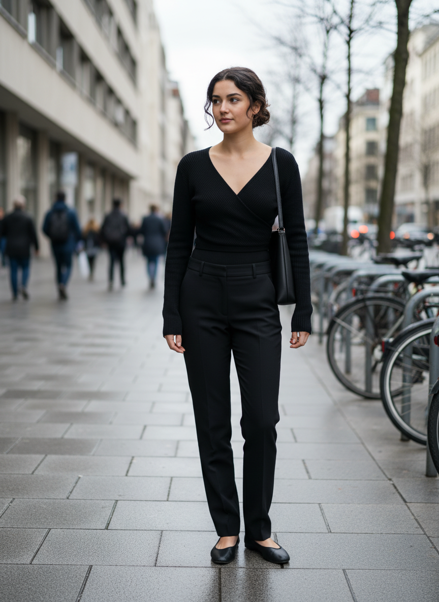Finish with simple flats and you’ve got an everyday outfit that feels both cozy and quietly chic.