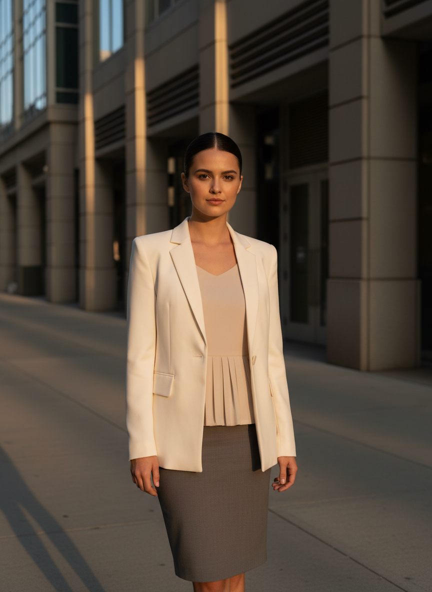Pairing a structured blazer with a soft pleated or tutu-inspired waist detail creates a contrast that feels genuinely modern — not costumey, not corporate, just interestingly in-between.