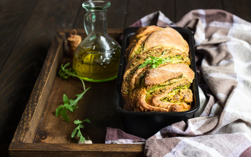 Garlic bread gets an upgrade when you swirl the butter and herbs directly into the dough rather than just spreading it on top.
