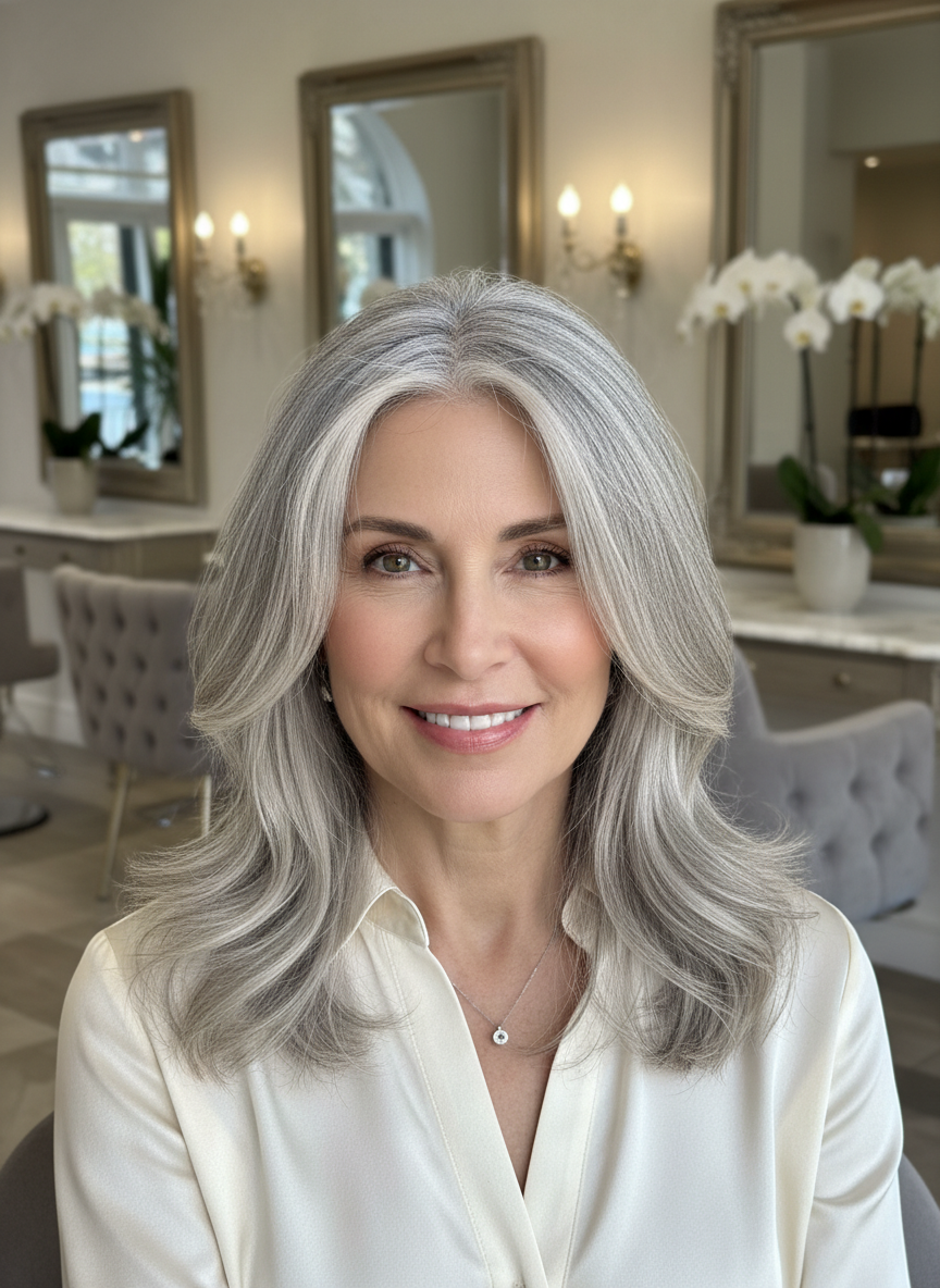 It’s about owning your natural beauty with full confidence, and dimensional gray hair is the proof.