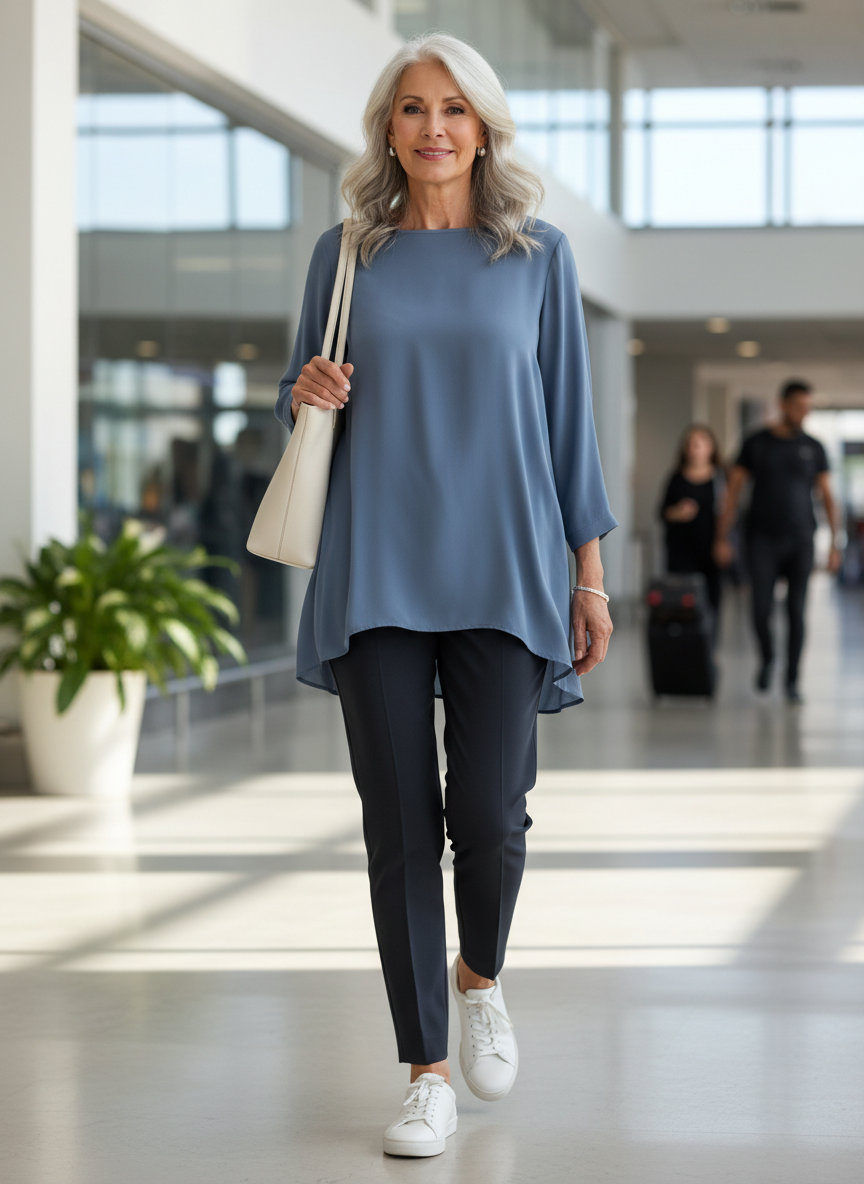 This combination feels forever fresh and works beautifully for travel, shopping days, or any occasion where you want effortless style.