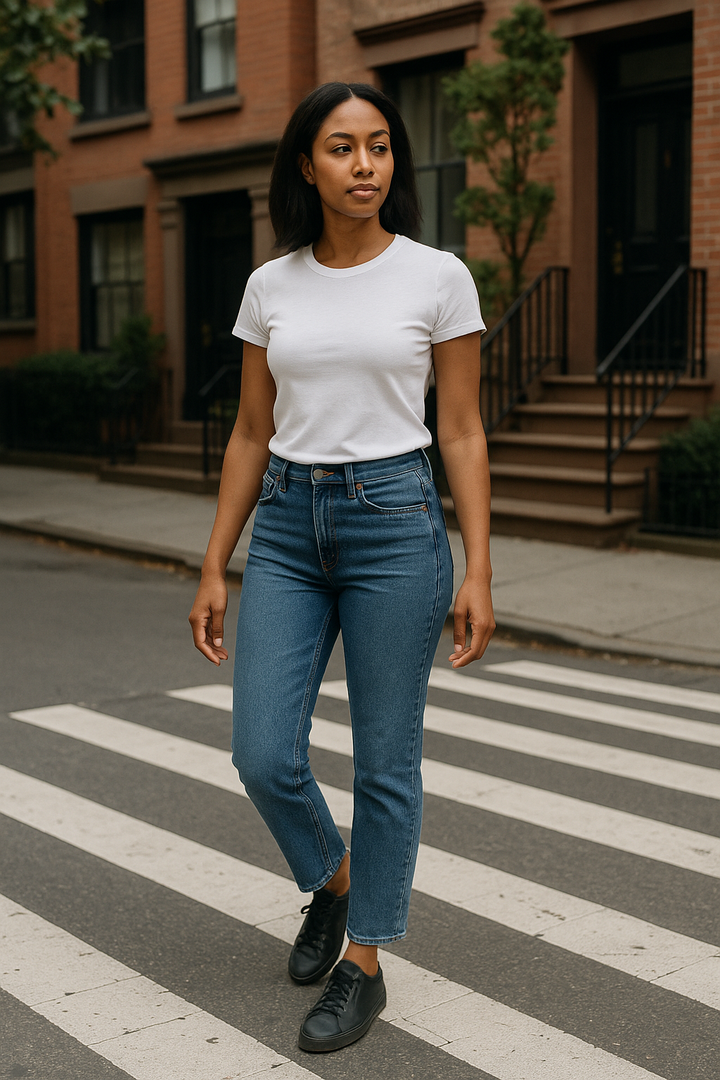 A great pair of jeans that fit you perfectly paired with a clean, neutral tee is a timeless formula that never goes out of style.