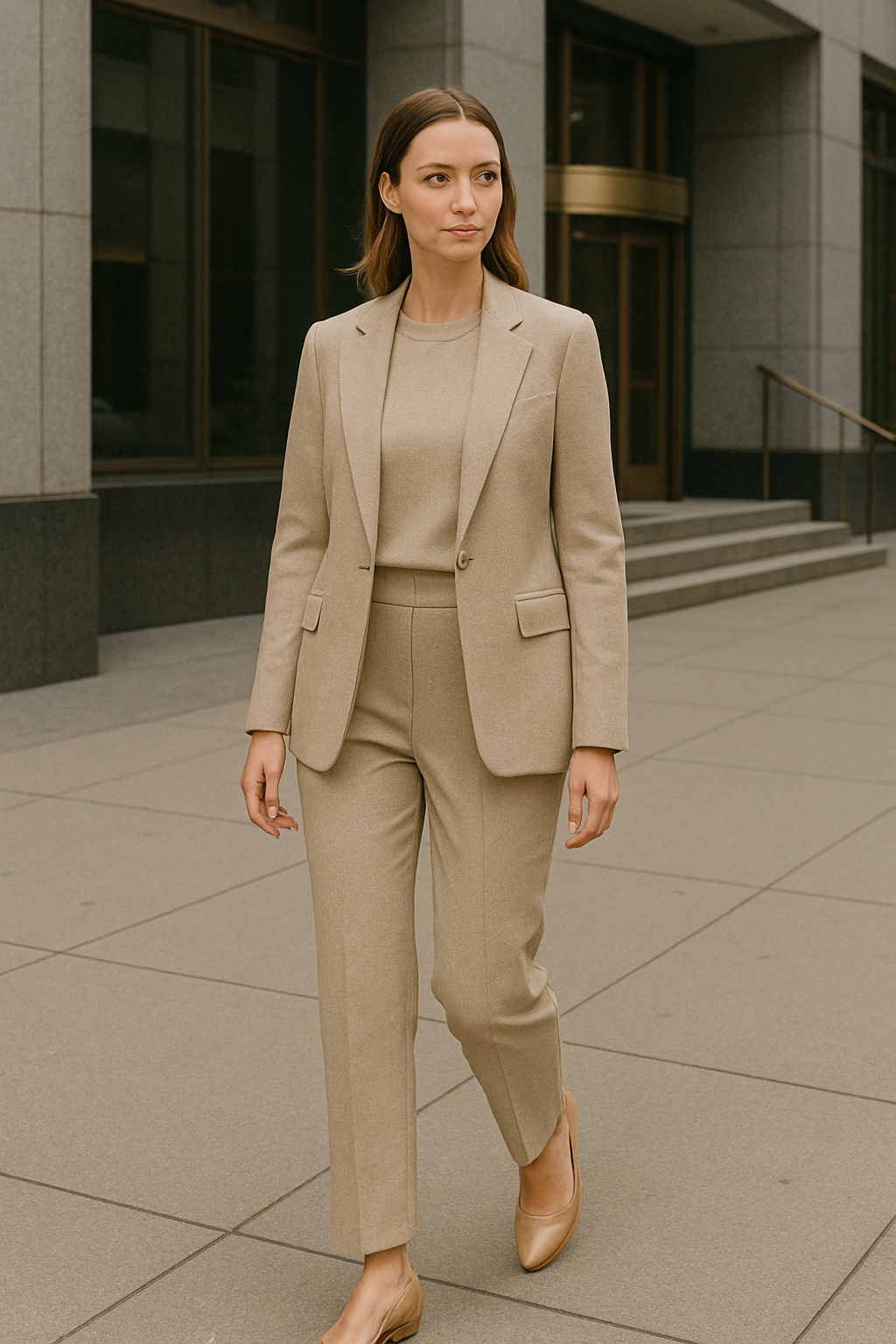 A monochrome outfit in neutral tones like beige, gray, or camel creates a streamlined, sophisticated look effortlessly.