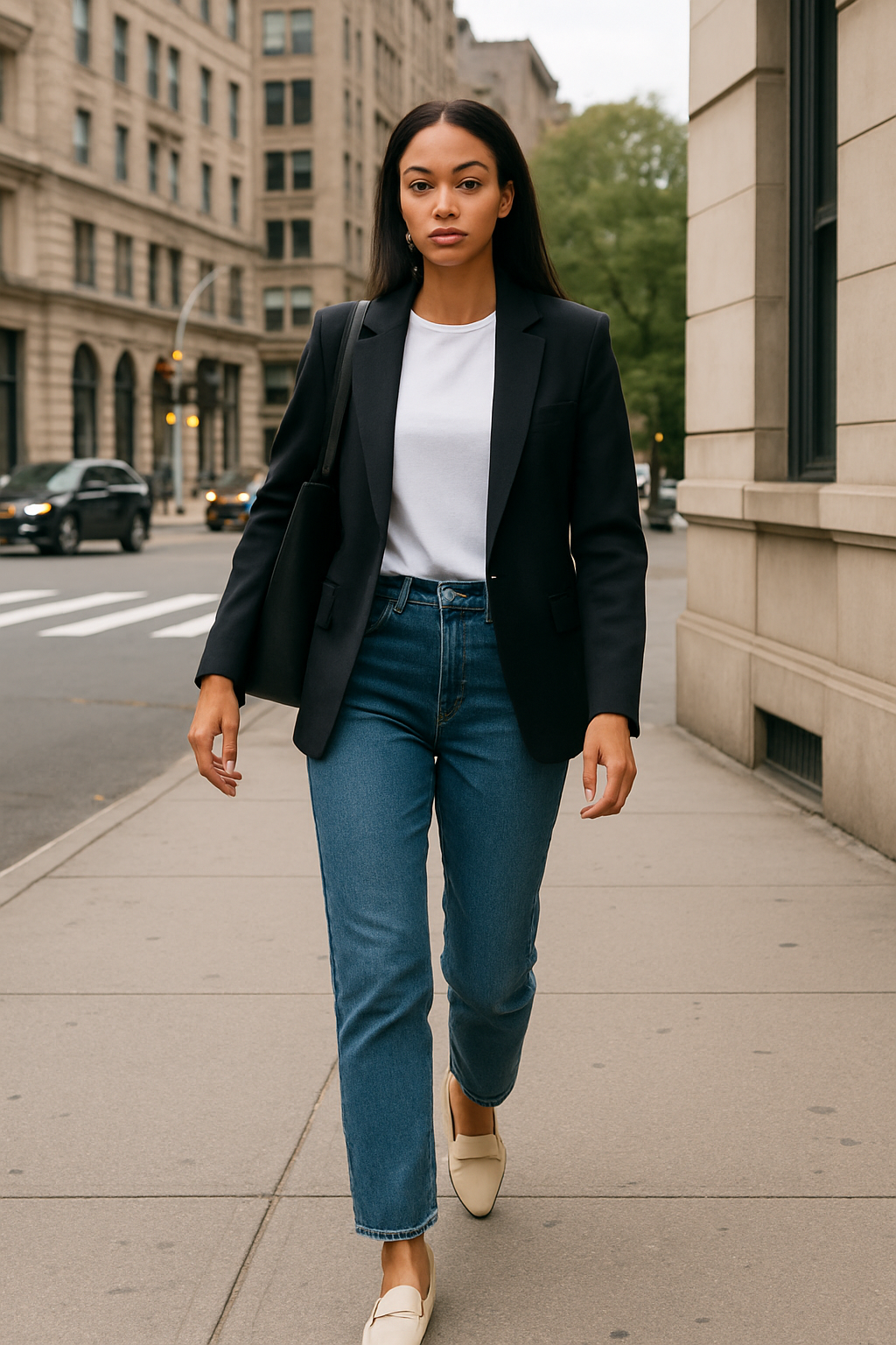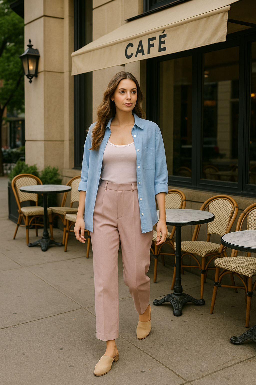 Finish with mules or sandals, and you’ve created a look that feels thoughtfully curated even though it came together in minutes.