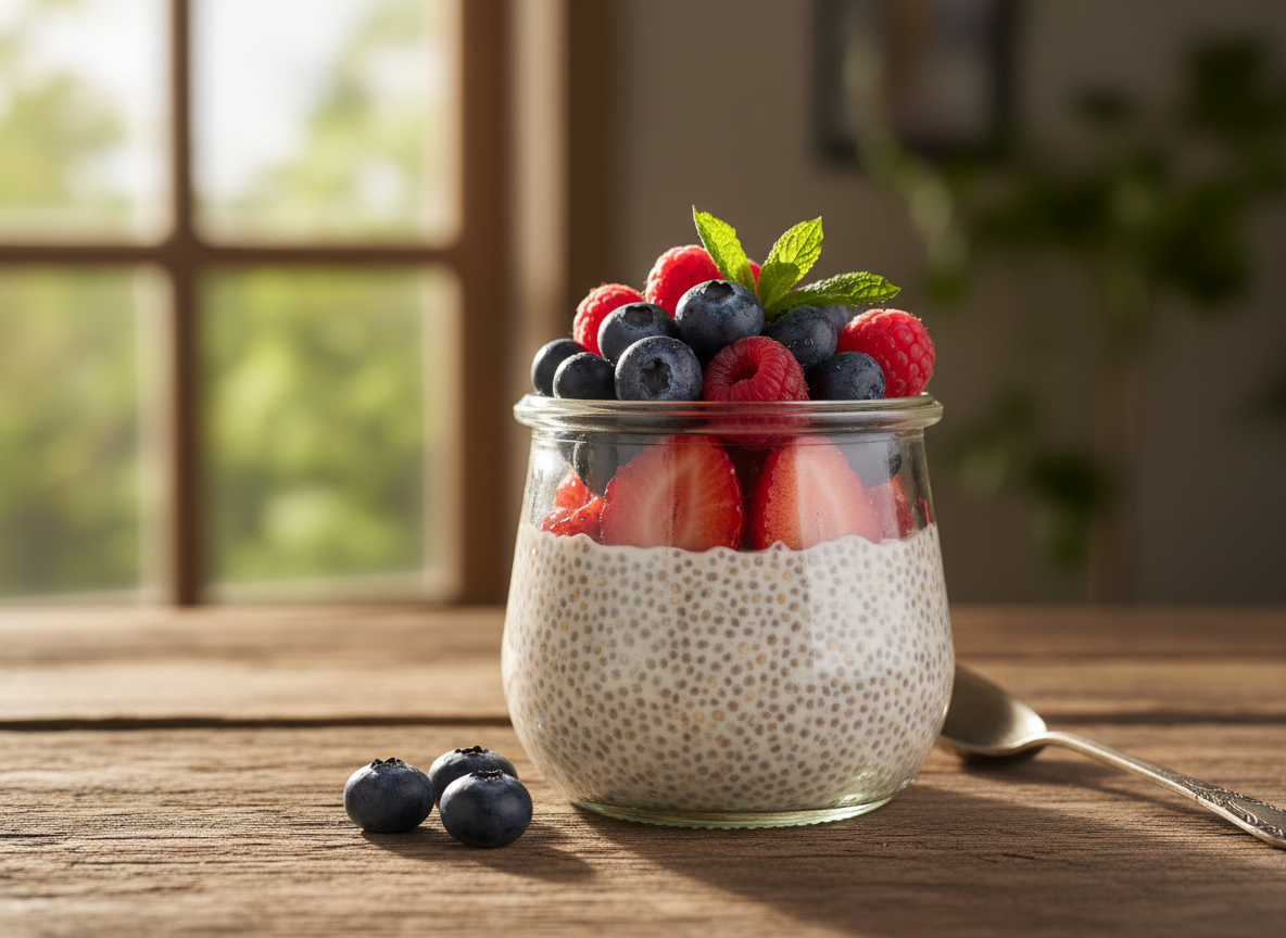 When soaked overnight, chia seeds transform into a creamy pudding that pairs perfectly with strawberries, blueberries, and raspberries.