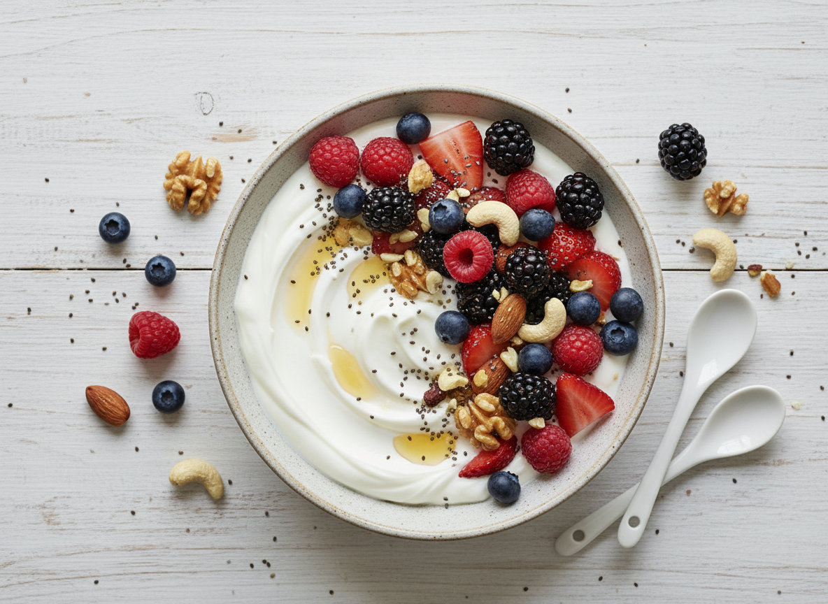 7. Coconut or Greek Yogurt Bowl with Berries, Chia Seeds, and Nuts