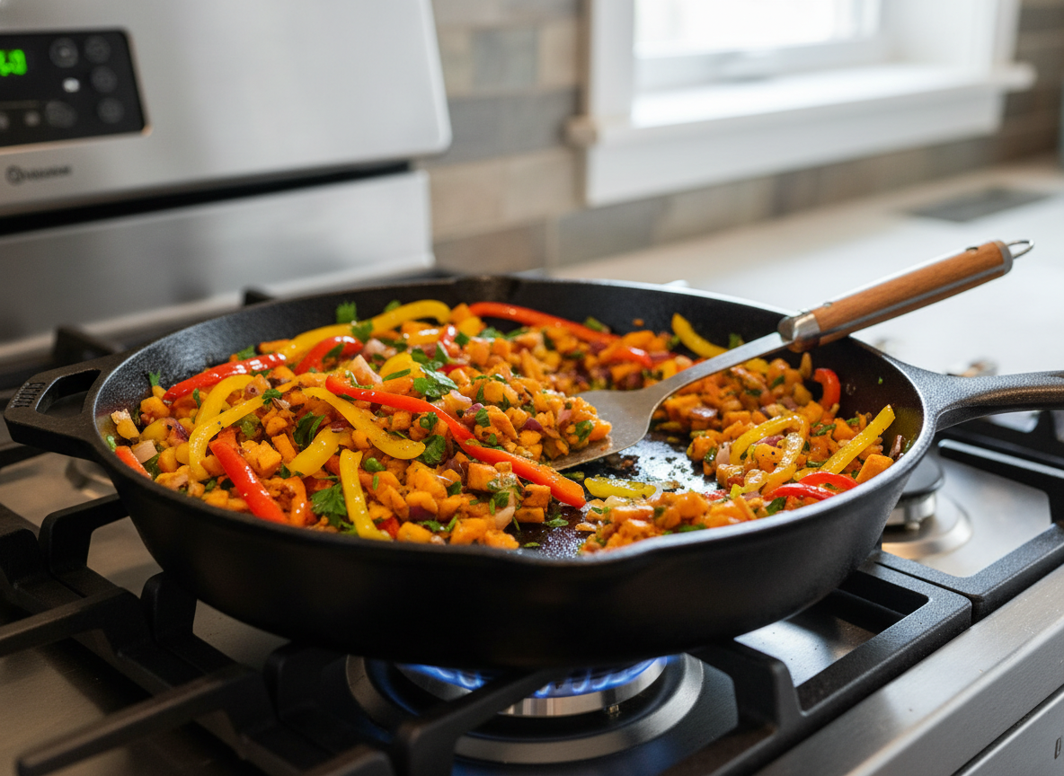 9. Sweet Potato Hash with Bell Peppers and Olive Oil