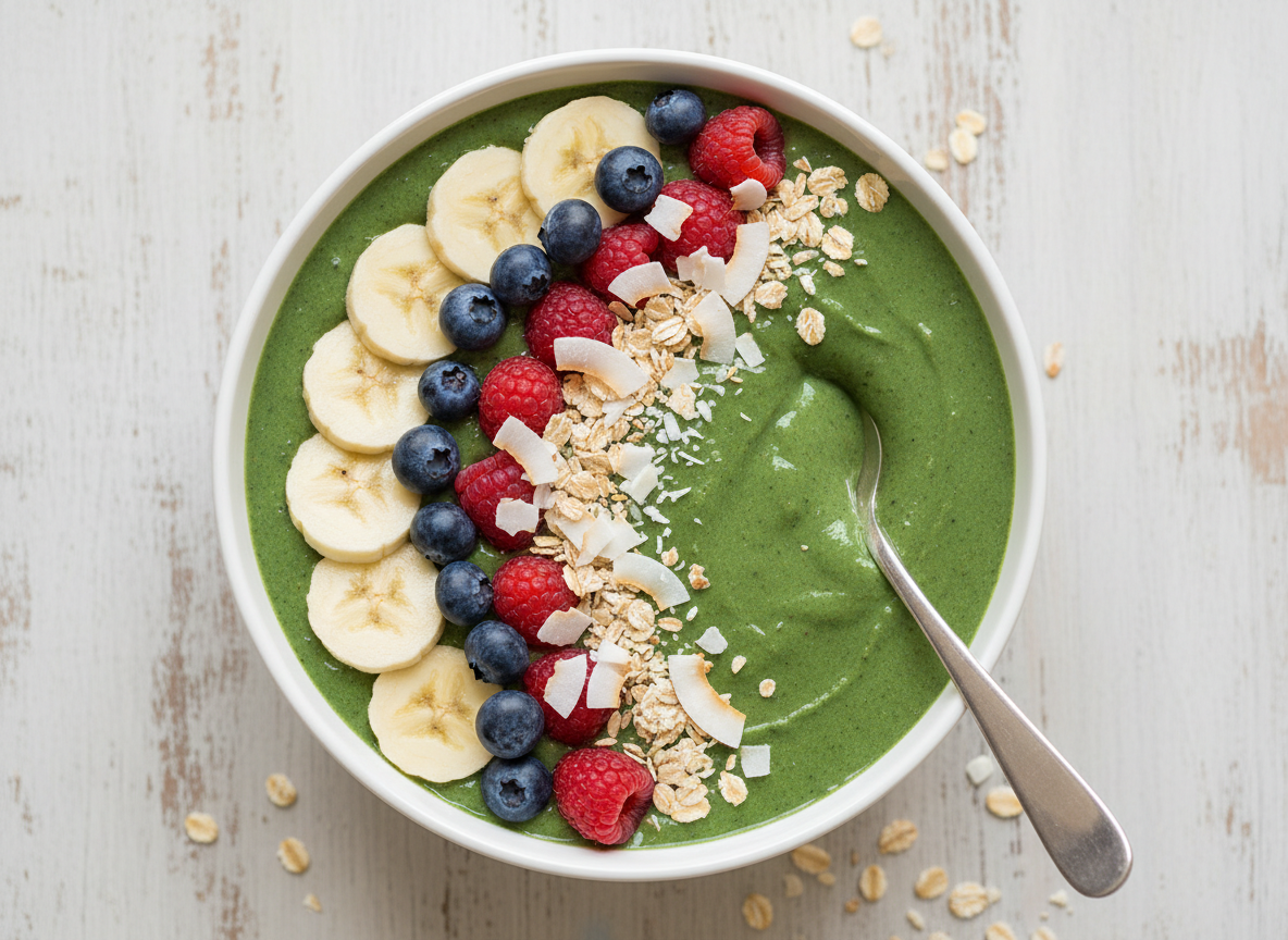 10. Green Smoothie Bowl with Spinach, Banana, Oats, and Antioxidant Fruit